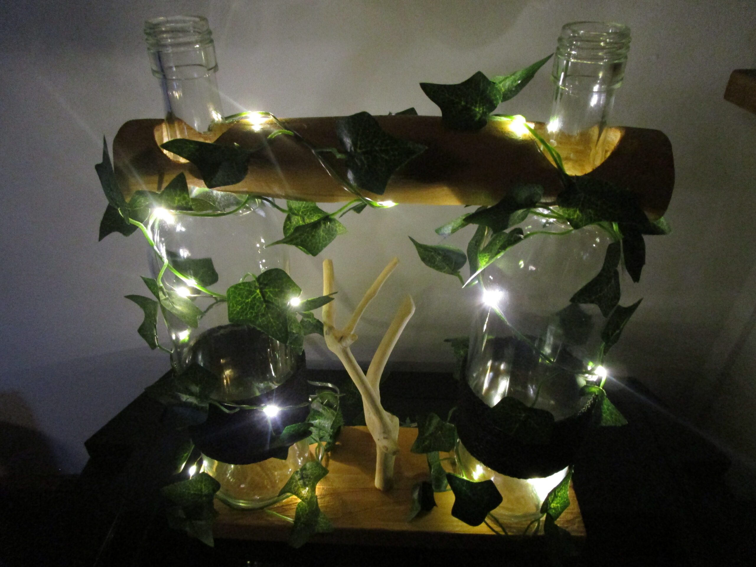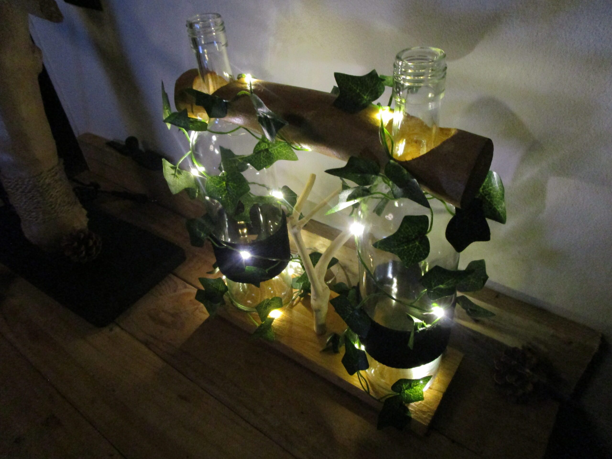 "Apportez une touche de magie et de durabilité à votre intérieur avec cette lampe unique en son genre. Façonnée à la main avec amour à partir de bouteilles de verre recyclées et de bois de palettes récupéré, elle diffuse une lumière douce et chaleureuse. Chaque pièce est unique, portant l'histoire de ses matériaux et le soin de l'artisan. Parfaite pour créer une ambiance cosy et éco-responsable dans votre salon, votre chambre ou votre bureau."